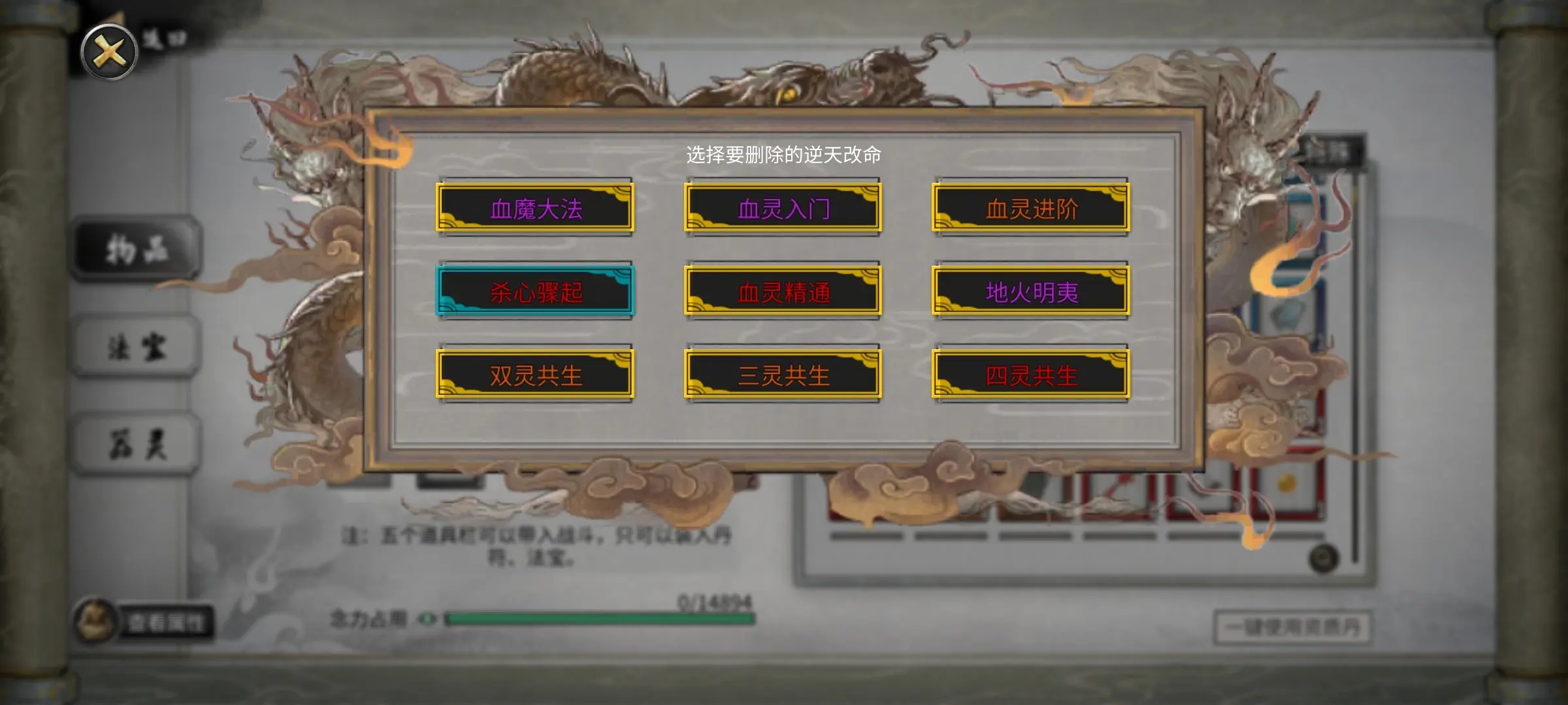 先点【大李飞剑】,依靠其控制debuff。筑基到金丹分别选小李、中李、大李,具灵选【兵刃专精】。