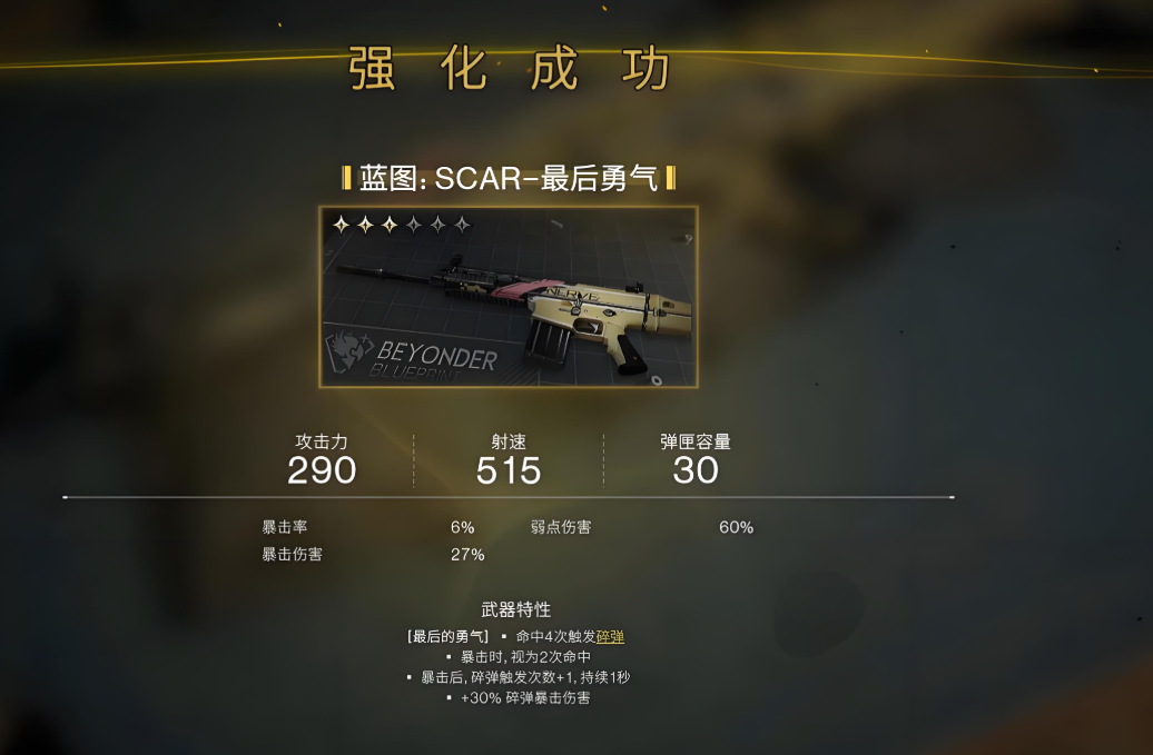 步枪兼顾了射程、伤害和射速,是一种比较全能的武器。在中远距离作战中有着出色的表现,既可以对单个敌人进行精准打击,也能在团战中提供持续输出。最后的勇气是步枪中人气较高的一把,它拥有独特的击杀效果,每次击杀都会增加攻击伤害,这使得玩家在战斗中随着击杀数的增加,输出能力也不断提升,无论是PVE还是PVP模式都非常实用。