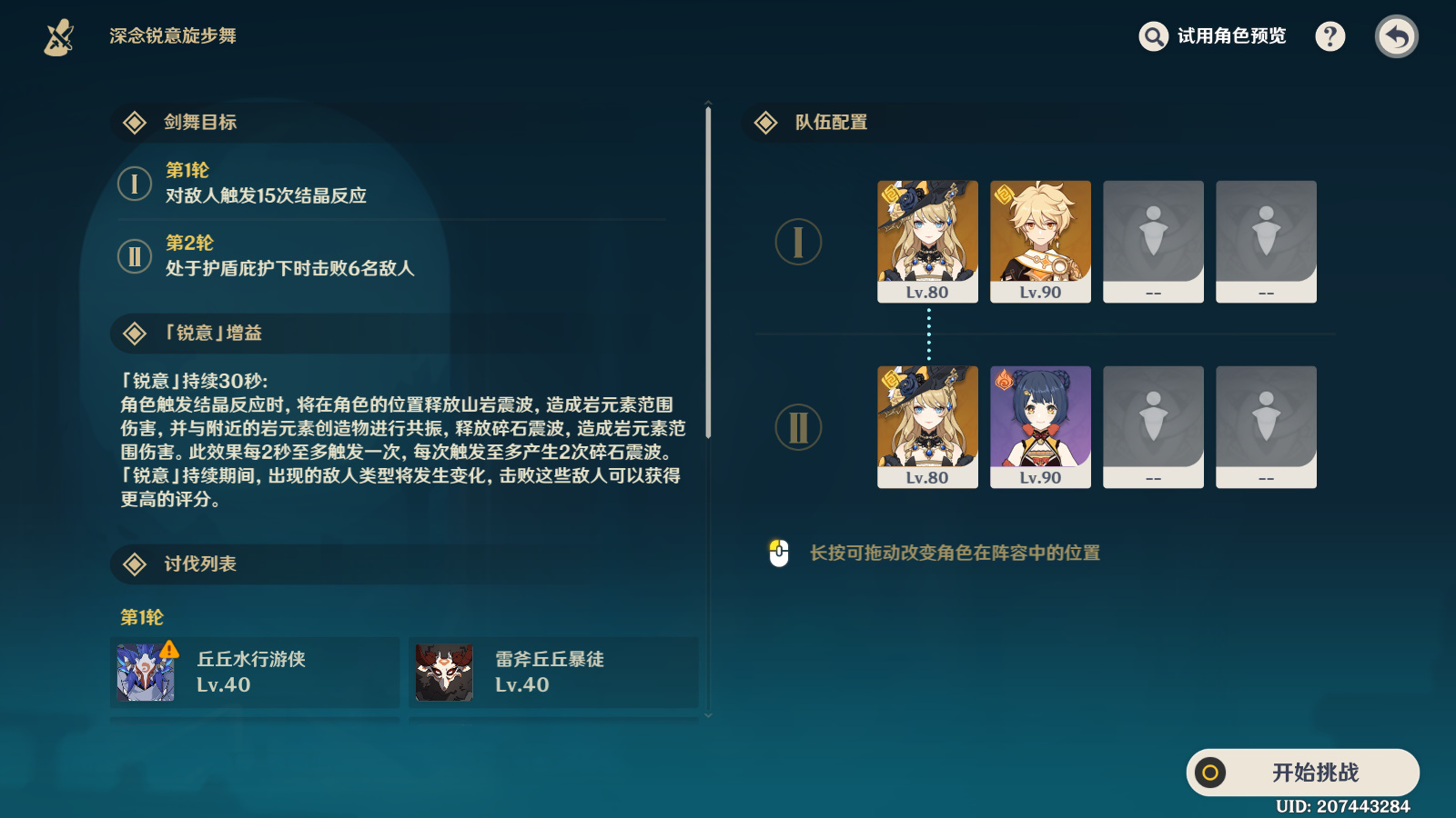 第1轮:对敌人触发15次结晶反应。第2轮:处于护盾庇护下时击败6名敌人。