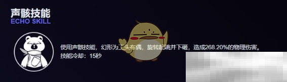 1.工头布偶的声骸技能十分独特,当玩家施放声骸技能时,工头布偶会幻形为工头布偶的形象,然后旋转起跳并下砸,这一动作会对敌人造成268.20%的物理伤害。简单直接的伤害方式,让它在战斗中能够迅速打出可观的输出。