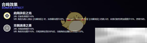 5件效果:角色攻击提升15%,共鸣效率达到250%后,当前角色全属性伤害提升30%。这要求玩家在战斗中不断提升共鸣效率,当达到250%的关键节点后,就能获得全属性伤害大幅提升的强大效果,让玩家在战斗中占据更大的优势。