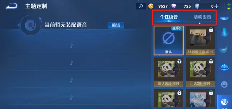 4.进入语音设置界面后,会看到“个性语音”和“活动语音”两个主要选项。因为我们领取的是活动语音包,所以在这里选择相应的语音包