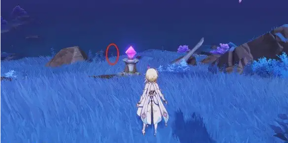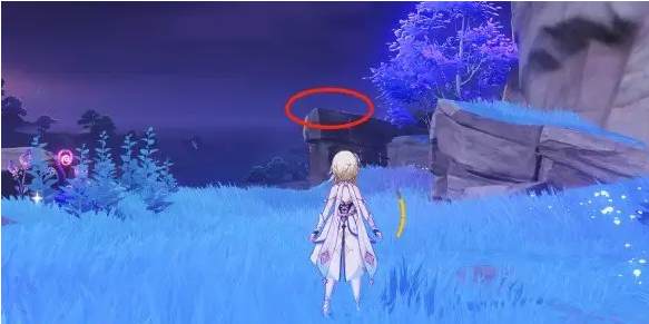 2.传送至路线图中的传送锚点之后,根据下图圈出的标记,到达这棵植物所处的位置