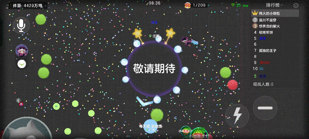 在游戏中显示的昵称就是蓝色的“洋洋”这两个字。
