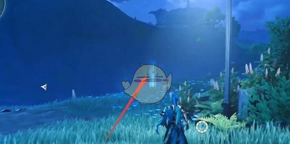 靠近瀑布后,留意周围的地形,会发现一个水塘。刺玫菇就位于这个水塘之中。值得注意的是,刺玫菇通常会有一些环境元素相伴,比如周围可能会有独特的光影效果或漂浮的粒子特效,这些都能帮助你更准确地锁定它的位置。