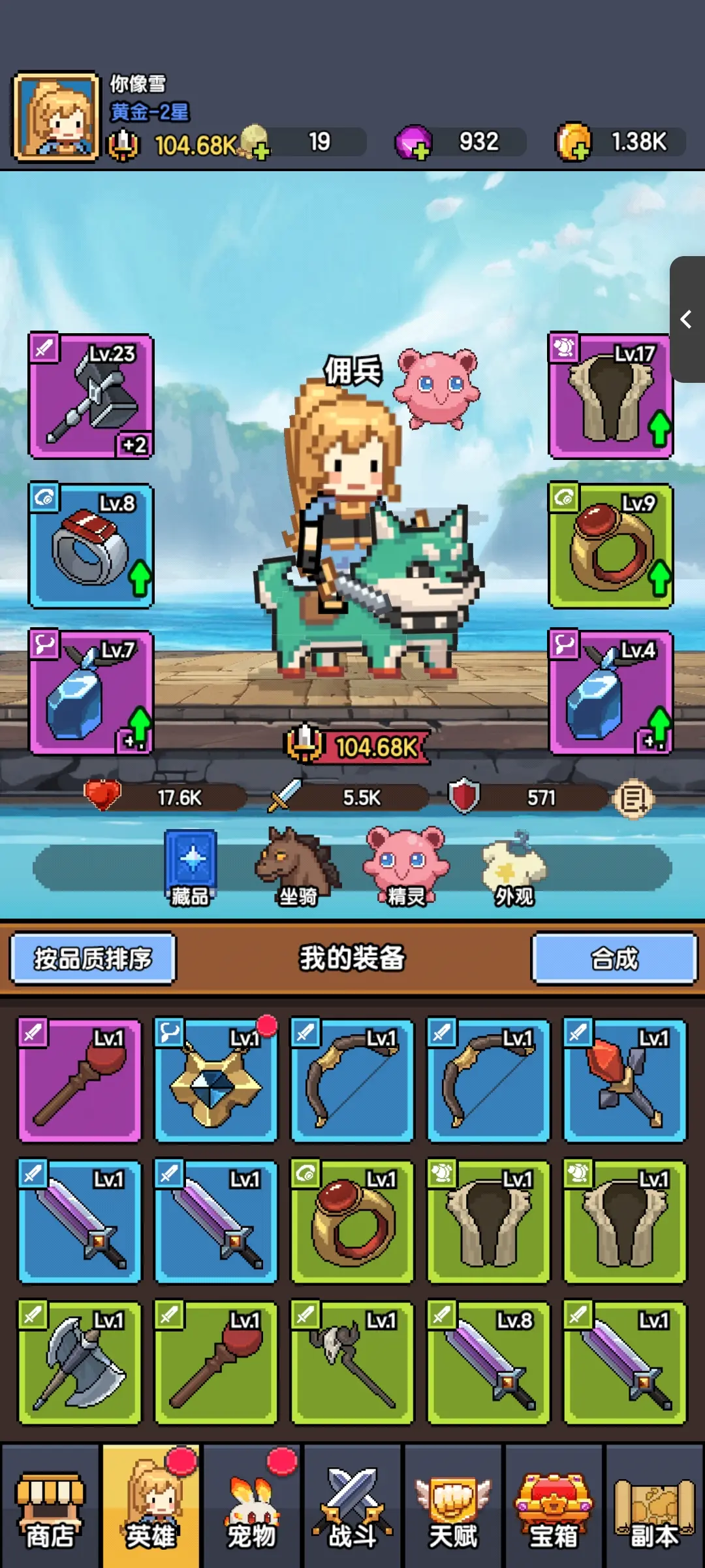游戏中的装备分为武器、衣服、项链和戒指四大类,每个类别都有不同的属性和特效。玩家需要根据自身需求和战斗场景选择合适的装备。