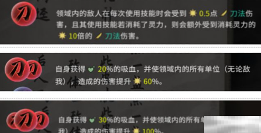 3.刀领域:玩家自身获得30%吸血效果,同时领域内所有单位伤害提升100%,形成强大的攻击合力。