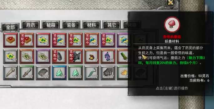 3.食用奇异蘑菇后,尽管魅力值下降,但每月可恢复20%体力,持续六个月。这一效果对长期作战和提升玩家生存能力大有裨益。