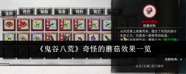 鬼谷八荒手游中玩家将会扮演一位修仙者,在地图上探索的时候经常会见到一种蘑菇怪物,打死之后会掉落奇异蘑菇。这个物品非常的奇怪,很多玩家也有点搞不清楚这个奇异蘑菇应该如何使用,因为他给玩家带来巨大的魅力值减益,高达300点,这样的副作用让很多玩家望而却步。那么如果玩家已经获得了这个蘑菇,要怎么使用呢?一起来看看吧!