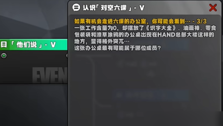 任务围绕对空六课办公室的布局展开,玩家需根据办公桌上的物品摆放,推断出对应成员的身份。