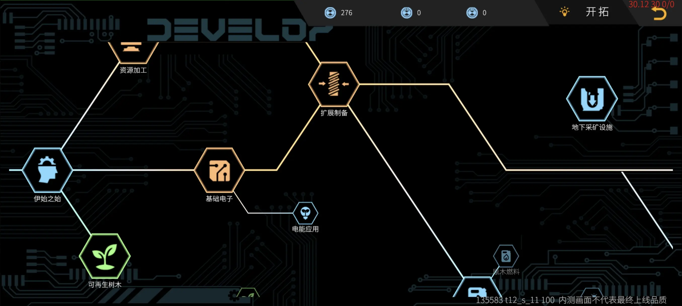 5.目标定位:从“拓展带宽1型”科技解锁开始,直至建立自动矿机。集中采集铜和铁,用于合成量子,进而提升科研速度。