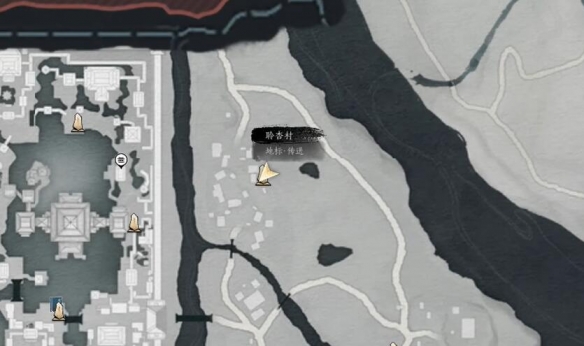 1.从聆杏村传送点出发,沿石板路向南直行,穿过木桥后可见NPC【卖药郎】。