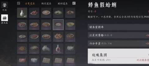 其他可选商品:山鸡酥、鲤鱼焙面等,但收益略低于金疮药。