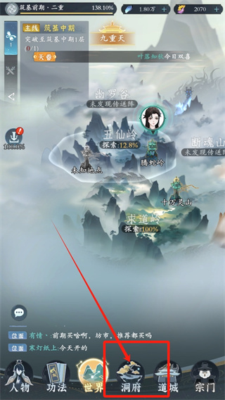 进入洞府:启动游戏后,点击下方导航栏的“洞府”按钮,进入个人洞府界面。
