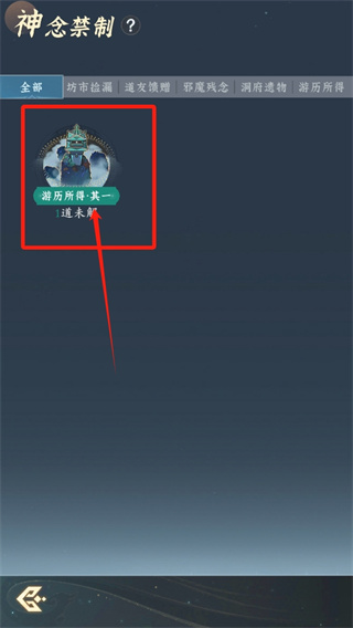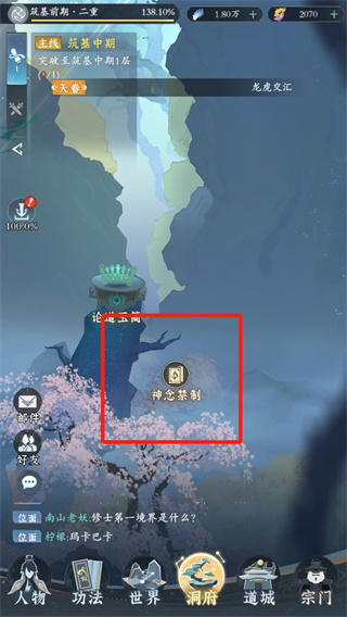 发现神念禁制:在洞府的右侧,隐藏着论道玉简和神念禁制。点击神念禁制,开始解锁之旅。