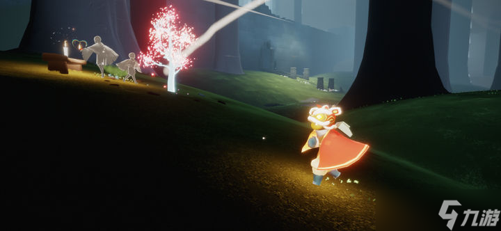 云野赏花任务的关键位置位于云野大厅左侧的小山坡上,具体坐标为衣柜正对面的区域。进入云野地图后,玩家需要直接向左飞行,抵达带有先祖石碑的山顶平台,此处可见石凳和小树苗组成的赏花点。完成方式为靠近小树苗静候其生长约一分钟,期间无需任何操作,待系统提示任务完成即可获得相应奖励。