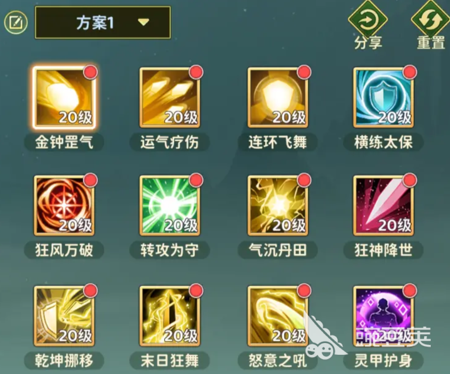 根据这些特性1转,必选点满能增加防御力的“金钟罡气”,以及延长愤怒时间的“狂风万破”,这两个分别能增加防御力和提升爆发,是前期一定要打好打基础,2转就可以去点满“转攻为守”。