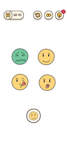 嘴型变化是重点 第10关需要调整嘴型,我们点击第一行右边的表情,往下拖动,直到变成微笑的形状。这一步很微妙,得慢慢来。
