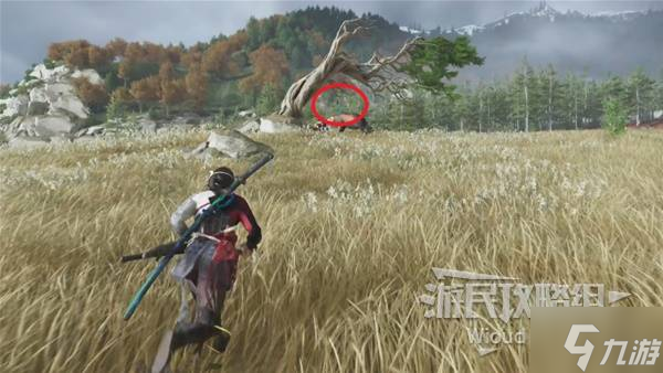 到达营地和说书人对话,然后击败前面的熊,拾取挂在树上的风铃。