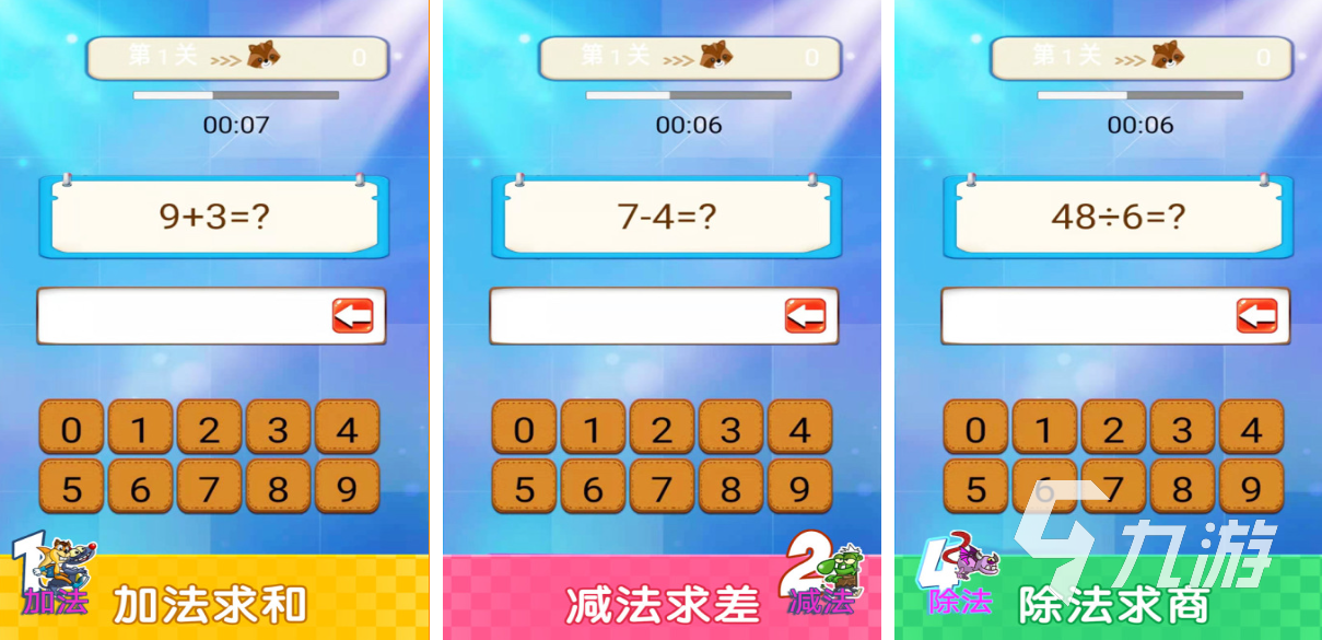 小学生们比适合玩玩这款学数学知识的简单小游戏,利用加减乘除算法换算任务目标的设定更有新鲜感,只需在空白区域填写上正确的答案就可以进入下一关,简单休闲的数学解谜设定超适合宝宝玩,生动的背景刻画跟并不难的数学题目也极具吸引力,父母可以与孩子一起进入数学的世界中自由换算。