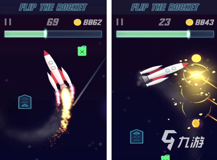 这款游戏里,玩家们要努力用手指点击,帮助火箭飞上太空。这一款游戏还是非常考验玩家的手速的,因为不断点击就能够获取燃料和助推动力,不过除了点击之外,玩家还需要操纵火箭的飞行方向,要小心躲避类似陨石的障碍物。飞行途中可以获取金币,等到一局游戏结束之后就能够去商店购入更高级的燃料和加速器,帮助玩家冲分、创造新纪录!