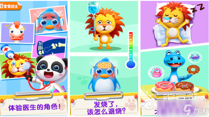 这款很有创意的医院主题游戏帮助孩子克服对医院的恐惧,医院的环境营造侧重卡通风格亲和力自然不差,小朋友可同时体验当病人、医生双重角色参与冒险,高互动性的玩法呈现助力孩子告别好习惯,点触屏幕即可跟众多呆萌动物病人互动,身临其境进入医院玩耍的游戏理念更受低龄宝宝的欢迎。