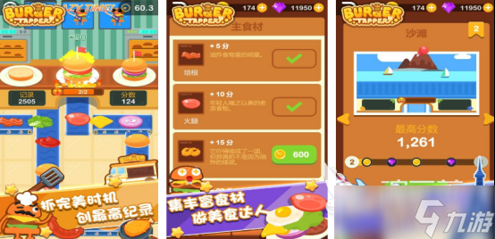 汉堡是此游戏的主要题材,但是玩法却特别简单,和叠叠高类型的游戏都特别相似,因为屏幕上方会不断掉落下各种美味的汉堡,而大家通过合理滑动的方式,将这些汉堡成功叠加起来,每次叠加一个汉堡之后都会将分数有所提升。看看到最后谁的分数更高。