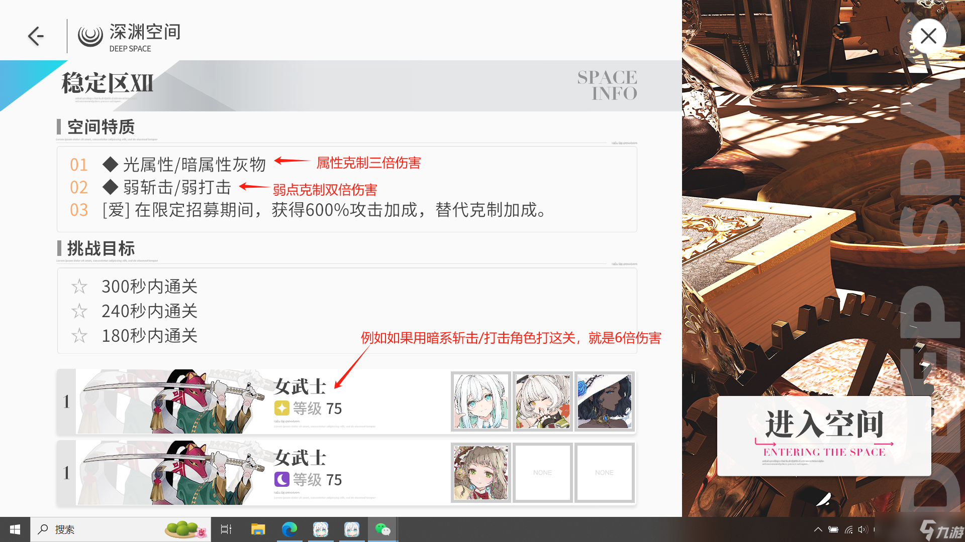 6.深渊环境如图所示,利用好属性克制和弱点克制,通关事半功倍