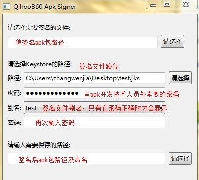 (注: 签名文件和密码可以找您应用的开发人员索要。)
