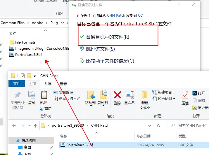 4、安装完成后,将patch文件夹中的Portraiture3.8bf复制到刚才指定的目录中进行替换;