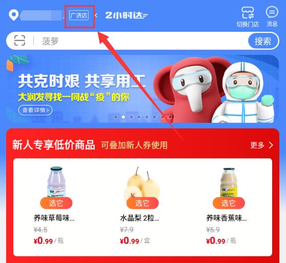 1、打开app,在右上角点击“切换门店”