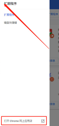 2、在扩展程序页面上点击左上角的“更多”选项,然后点击“打开Chrome网上应用店”。
