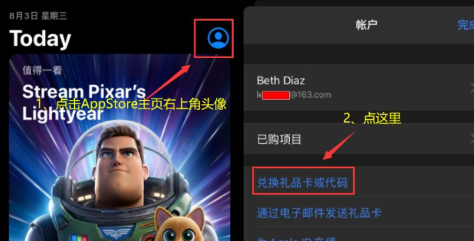 礼品卡购买好过后,我们会收到礼品卡充值代码。打开AppStore主页,
