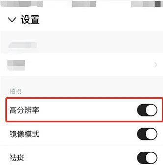 4、第四步:进入设置界面在拍摄一栏将【高分辨率】右侧的虚拟键打开就可以了。