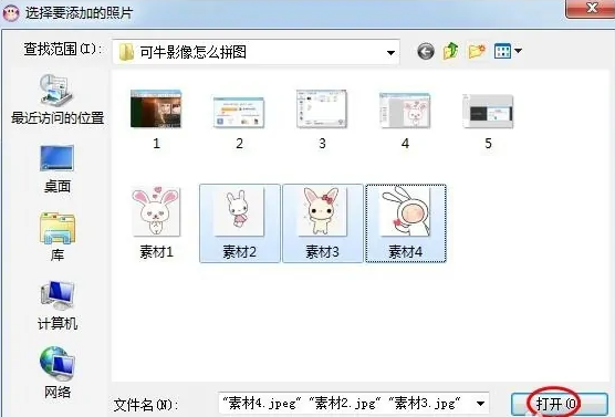 5、按住Ctrl键选择需要进行拼图的图片,点击打开。