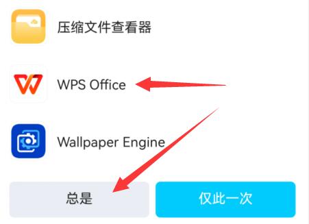3、然后选中“wps”点击“总是”就能打开et文件了。