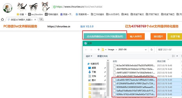 4、在弹出的页面中将需要进行查看的DAT图片添加到点击选项DAT文件(可批量选择)按钮。