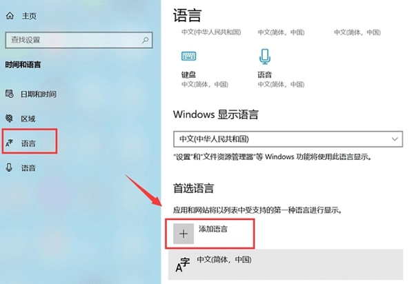 3、我们选择左侧的语言选项卡,随后我们点击添加语言,随后我们选择需要添加的语言并将其设置为默认语言。