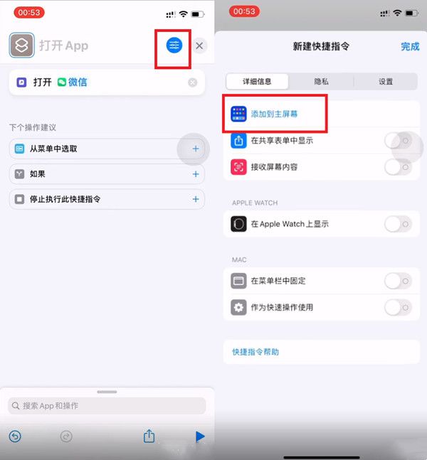 3、第三步:返回上一步,点击右上角蓝色图标,点击【添加到主屏幕】;