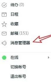 2、点击自己的头像,在展开的菜单栏中选择“消息管理器”,