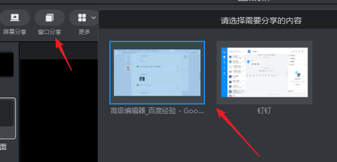 4、之后点击左上方的“窗口分享”,在右侧选择一个需要分享的窗口。点击选择分享的窗口可以拖动改变大小。