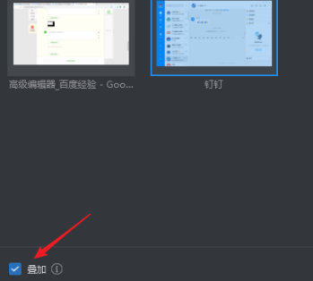 5、再次回到“窗口分享”,选择另一个窗口并在左下角勾选“叠加”。