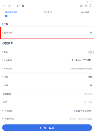 2.填写页面中带“*”号的字段后,点击“下一步”。
