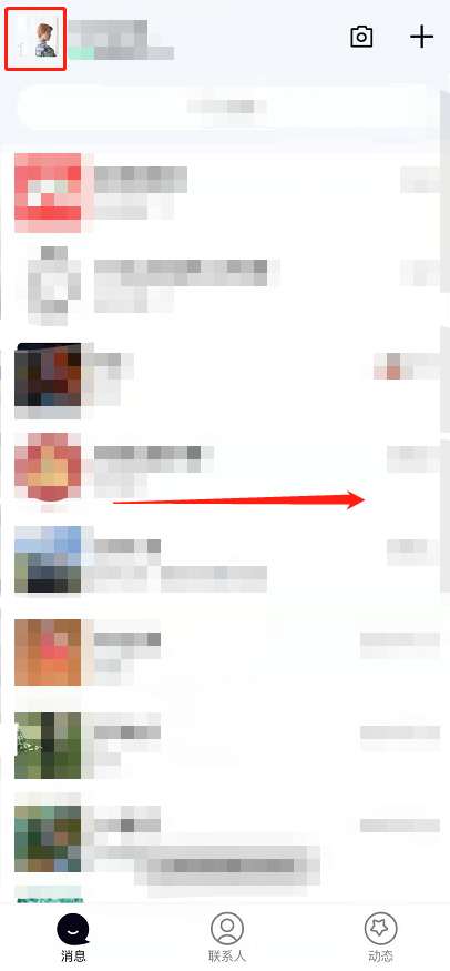 2、打开QQ,点击上方头像或左滑页面。