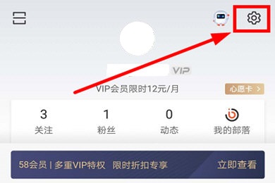 1、首先,打开58同城APP,进入到”我的“个人信息设置界面,再选择右上角的齿轮按钮,他就是系统设置功能。