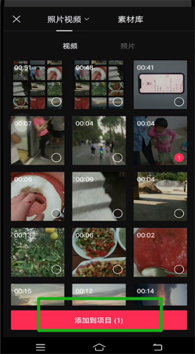 2.选择一个视频,点击添加到项目