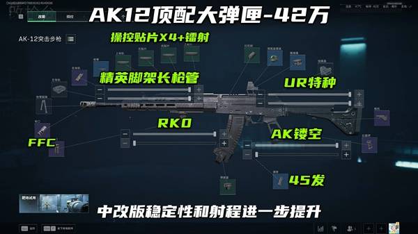 三角洲行动S7赛季中AK12有极高的性价比,稳定性强,改枪造价低,是当前赛季比较强力的武器了。超压弹强化后的输出在A+级武器中算最高的一批,4弹对局中各方面属性都很优秀。4弹2发秒杀34以下耐久的4级头。