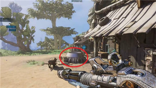 我们需要将解酒药投掷到两个房屋中间的啤酒桶里,在房屋上方平视啤酒桶,保持下图的幅度可直接投进去。