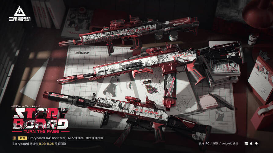 全新上架K416突击步枪、MP7冲锋枪等系列武器皮肤,搭配专属挂饰、军牌及喷漆,售价2400三角券/三角币。