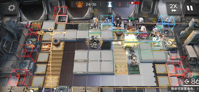 开局在右边蓝门门口放德克萨斯,然后在德克萨斯前面两个格子放向下的伊内丝